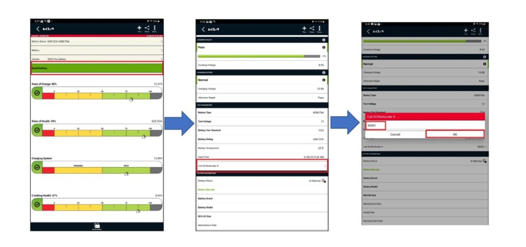 Publicaciones de KIA P2M Favorito Entrada del número de pedido de reparación de la aplicación B2QScan Es posible que tenga problemas para obtener la aprobación de un reclamo de garantía de la batería, ya que no hay ningún número de orden de reparación (RO#) en la prueba. Cómo ingresar el RO# en la aplicación B2QScan: Realice una prueba con el Kia Smart Battery Tester y abra los resultados completos de la pruebaDesplácese hacia abajo hasta la sección Parámetros de prueba y busque ID de llamada/Orden de trabajo # y seleccióneloAparecerá un cuadro emergente y se podrá ingresar el RO#Seleccione Aceptar La prueba se volverá a sincronizar con la nube para generar una ID de prueba. Como siempre, utilice KGIS para obtener la información de servicio más actualizada. ¡Gracias por apoyar la capacitación técnica de Kia! Aplicación B2QScan Reclamación de garantía de batería KGIS Técnico Técnico Más publicaciones sobre Kia P2M