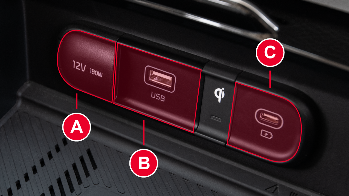 KIA P2M Posts Favorite Differences of USB Device Ports Features may vary Select 2024 model year Kia vehicles may have two types of USB ports: a Multimedia USB Port and a Device-Charging USB Port. Vehicles may be equipped with both USB-A and USB-C ports, or a 12V power outlet. 12V Power Outlet (A): This port is labeled 12V and can be used to provide power for compatible devices that require 12 volts.Multimedia USB Port (B): This port is labeled USB and can be used to connect a compatible device to Apple CarPlay®* or Android Auto™* or a USB device to play music or perform infotainment software updates.Device-Charging USB Port (C): This port is labeled with a graphic of a charging battery and is used to charge compatible devices only. The Device-Charging USB Ports charge devices faster than the Multimedia USB Port. Notes Infotainment systems that support wireless Apple CarPlay®* will not support wired Apple CarPlay®*.These ports will only work when the vehicle is on or in accessory mode.Always use the USB charging cable that has been supplied by the device manufacturer. Use of an aftermarket cable is not recommended, as it may impact functionality and battery life.Location of the ports may vary depending on the vehicle. Watch the Multimedia USB Ports, USB Charge Ports and Power Outlets video to learn more so you can explain USB ports to your customers during Delivery or at the Service Drive. You can watch this video at any time and can even be shared with customers! Sincerely,Ownership Experience TeamKia America, Inc. Customer Experience Customer Satisfaction Delivery IQS USB Device Ports Sales Service More Kia P2M Posts