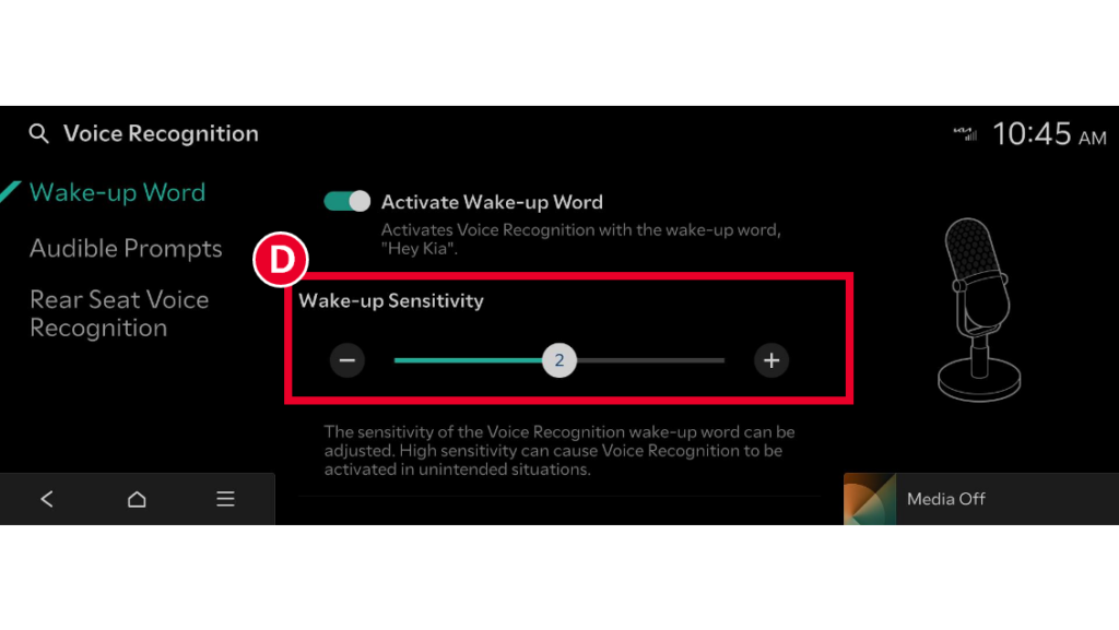 KIA P2M Posts Favorite “Hey Kia” Wake-Up Word 2025 Carnival MPV Hybrid shown, features may vary Overview With the “Hey Kia” wake-up word, customers can activate the voice recognition system (for equipped vehicles) using just their voice from specific seats in the vehicle. This technology even offers independent seat activation in some models like the 2025 Carnival MVP, meaning features can be activated independently for the seat that used the “Hey Kia” command. Some key features you can control with voice recognition include: Adjusting climate control for passenger and rear seatsOpening and closing windows from specific seatsControlling the relaxation functions of the second-row seats For example, if a passenger on the driver’s side second row says, “Hey Kia, open the window,” only the left-side window for that particular seat will open. Note: The wake-up word is only available on certain models equipped with Connected Car Navigation Cockpit (ccNC) head units. Additionally, certain models like Carnival MPV may light up the door dot pattern for the user that activated voice recognition using the “Hey Kia” wake-up word. Enable Wake-Up Word On the home screen, press the Setup widget (A).Select Voice Recognition (B).Toggle the slider to enable wake-up word (C). Troubleshooting Tips Unintended Activation Wake-up word activation sensitivity can be adjusted from the Voice Recognition settings. Lower the wake-up sensitivity setting to reduce unintended activation (D). Feature Is Not Available Error Certain voice recognition commands may not be available from seats other than the Driver’s seat. Note: Kia advises customers to update the head unit to the latest software by visiting https://update.kia.com/US/EN/Main Thank you for your attention and focus to explain all connectivity features to customers during the “perfect delivery” process! * Important Safety Information and Legal Disclaimers can be found in the link at the bottom of the page. “Hey Kia” Wake-Up Word Customer Experience Customer Satisfaction Delivery Features and Functions IQS Sales Service More Kia P2M Posts