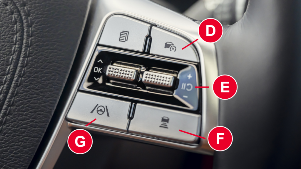 KIA P2M Posts Favorite Identifying Interior Vehicle Controls Features may vary During the Delivery process, be sure to highlight any buttons that customers may have trouble identifying. Helping them understand these Important to Explain (ITE) controls can enhance their overall perception of the vehicle. Map/Room Lamp Operation The following buttons and symbols are available on the 2025 model year Carnival MPV: Press the (A) buttons on either the driver or passenger side to turn the map lamps on or off.When the (B) button is illuminated, the map and room lights will automatically turn on when any door or the liftgate is opened, the doors are unlocked with the Smart Key, or the ignition is turned off.When the (C) button is pressed, the front and rear room lights will turn on. Steering-wheel-mounted Controls* The following buttons and symbols are available on most 2025 model year vehicles (if equipped): Smart Cruise Control* (SCC)To turn SCC* on, press the Driving Assist* (D) button to activate, and the speed will be set to the current vehicle speed.To adjust the speed, press the (E) button up or down to increase or decrease the set speed.To set the vehicle distance, press the vehicle distance button (F).Lane Keeping Assist* (LKA)Press and hold the Lane Driving Assist button (G) to turn Lane Keeping Assist* on or off. Check out the Smart Cruise Control* (SCC) with Overtaking Acceleration Assist and Lane Keeping Assist* videos on Kia’s Features & Functions YouTube™* Channel to learn more. Thank you for your efforts to ensure your customers get the most out of their ownership experience! Sincerely,Ownership Experience TeamKia America *Important Safety Information and Legal Disclaimers can be found in the link at the bottom of the page. Customer Experience Customer Satisfaction Interior Vehicle Controls IQS Sales Service More Kia P2M Posts