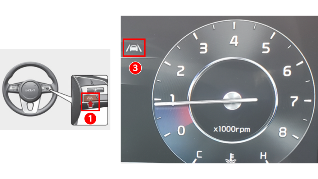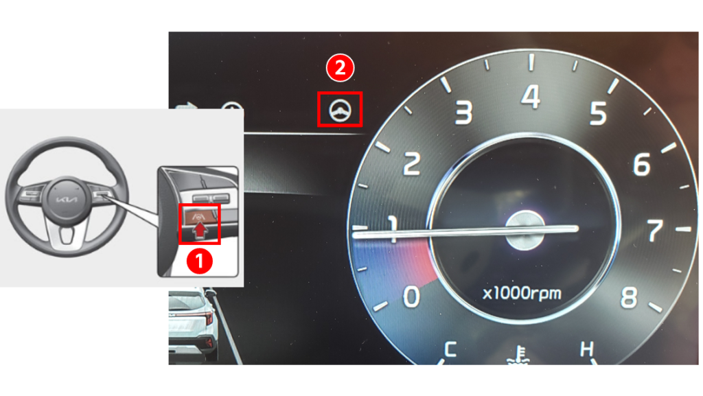 • How to Activate: Press the Lane Driving Assist button (1) on the steering wheel.