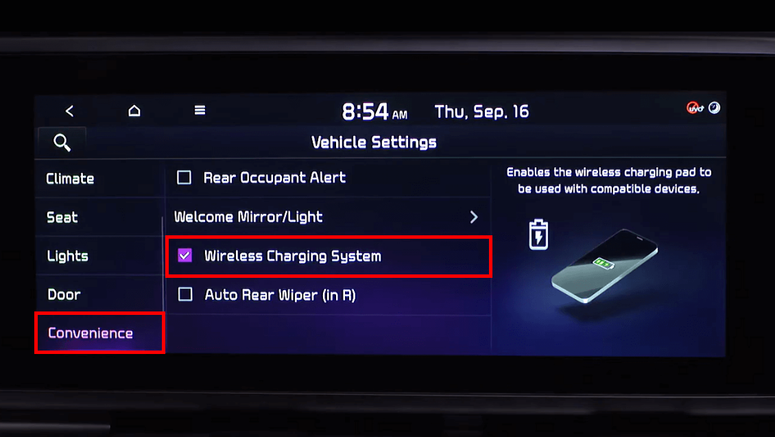 KIA P2M Posts Favorite Pro Tips for Wireless Phone Charging* Features may vary, simulated screen shown If equipped, be sure to show customers the convenience of wireless phone charging*! Demonstrate how to place their Qi®-compatible smartphone on the charging pad and watch the power flow—no cords, no hassle. Using Wireless Phone Charging* (If Equipped) Enable the wireless phone charging* system via the infotainment screen by selecting Setup > Vehicle > Convenience > Enable Wireless Charging System.Place a compatible smartphone on the center of the wireless phone charger*. The location of the wireless phone charger* may differ depending on the vehicle model.The indicator near the wireless phone charger* will light up amber when the compatible smartphone is charging. Depending on the smartphone, the indicator may turn green when charging is complete. Notes: For wireless phone charging* to work, Push Button Start must be on, all doors must be closed, and the Smart Key fob must be detected within the vehicle.Avoid placing other metal items near the wireless phone charger*The smartphone must be Qi®* certified; if it is not, it may affect the availability, speed, or performance of the wireless phone charging*Some phones will not charge wirelessly when connected to a USB portPhone case thickness may impact the charge rate Check out the Wireless Smartphone Charging System video on Kia’s Feature & Function YouTube™* Channel to learn more about explaining this feature during Delivery or in the Service Drive. Thank you for your efforts to help customers understand the technology features in their vehicles! Sincerely,Ownership Experience TeamKia America *Important Safety Information and Legal Disclaimers can be found in the link at the bottom of the page. Customer Experience Customer Satisfaction IQS Wireless Phone Charging Sales Service More Kia P2M Posts